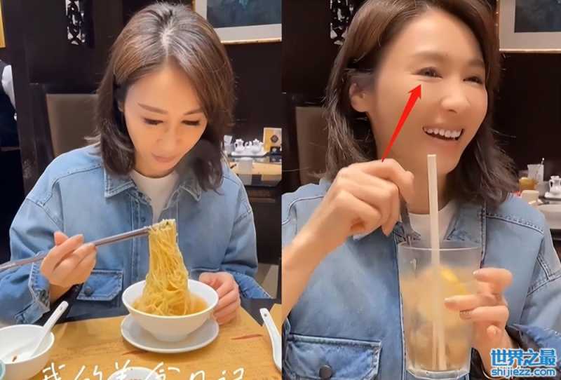 50岁黎姿平价餐馆吃面条,大口咀嚼十分接地气,皮肤白皙眼袋明显 ...