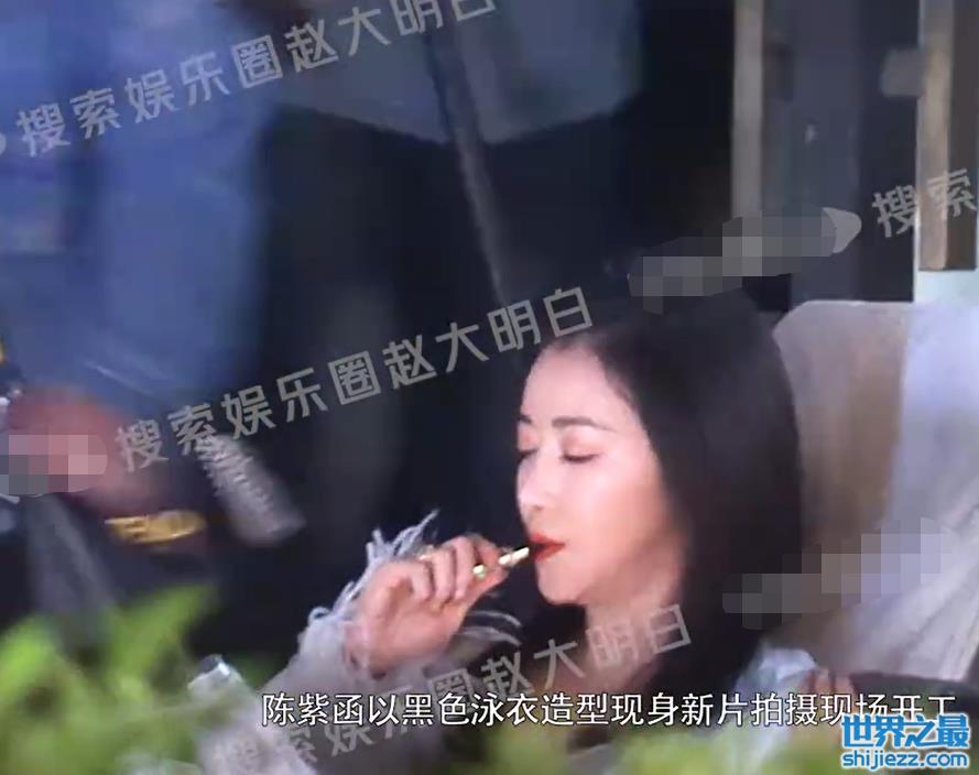 陈紫函片场拍戏狂抽电子烟!当众脱浴袍秀泳装,皮肤嫩白油亮反光 ...