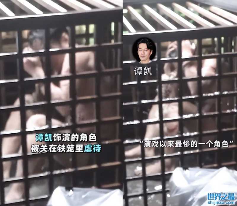 50岁谭凯拍戏太敬业!坐在铁笼中全身颤抖,仅穿一条内裤全身血浆 ...