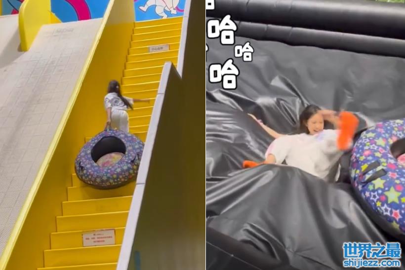 9岁甜馨游乐场嗨玩,咣咣撞墙摔地上不怕疼,扯垫子爬楼梯力气大 ...