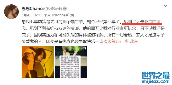 端午节哪天,思思也有悼念哥哥,透露哥哥离世后,见到了人走茶凉的世态,见到了利益维持友谊的冷暖。