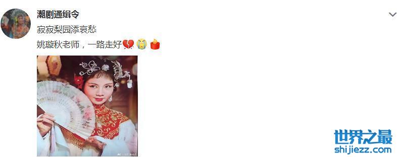 在前几天,姚璇秋还曾为了潮剧事业而出现在大众的面前,老人家一生致力于为潮剧事业的发展而贡献。家人突然传出离世的消息令身边的人十分的悲痛,老人家一路走好。
