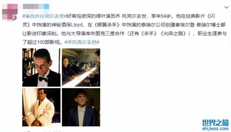 94岁资深演员乔·托克尔去世,代表作《闪灵》,出演过超百部作品 ...