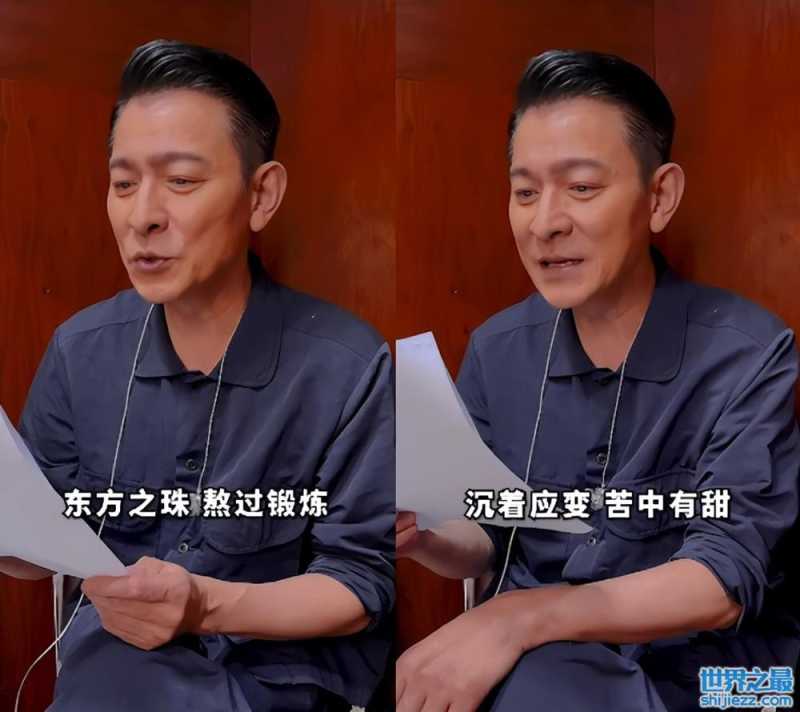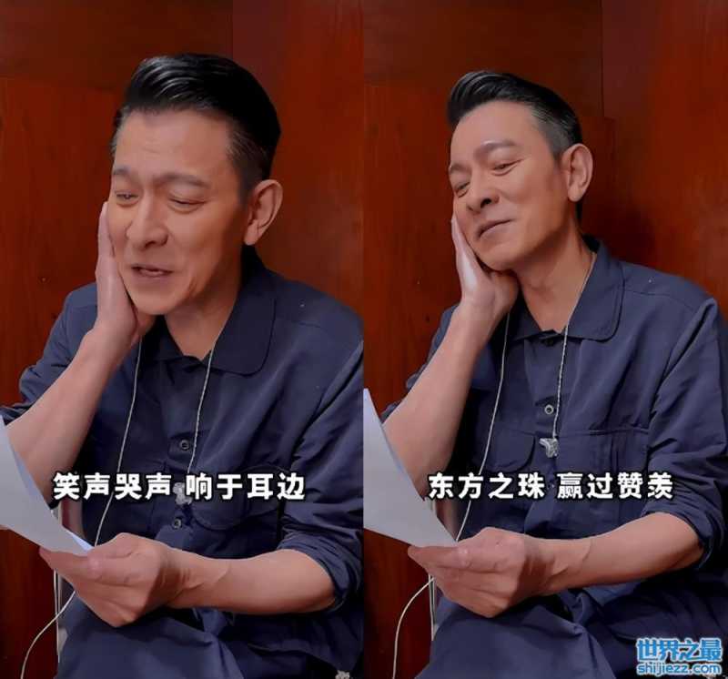 视频中刘德华梳着油头大背头,简单穿着一身蓝色衬衫。他捧着手里的歌词,眼睛不落旁地地看着。只见刘德华双鬓已泛白,但是大致模样还似十年前一般,可见刘德华还是那个精致的华仔。刘德华自信满满地开嗓,声音落地洪亮大气,不愧是当年的四大天王之一。