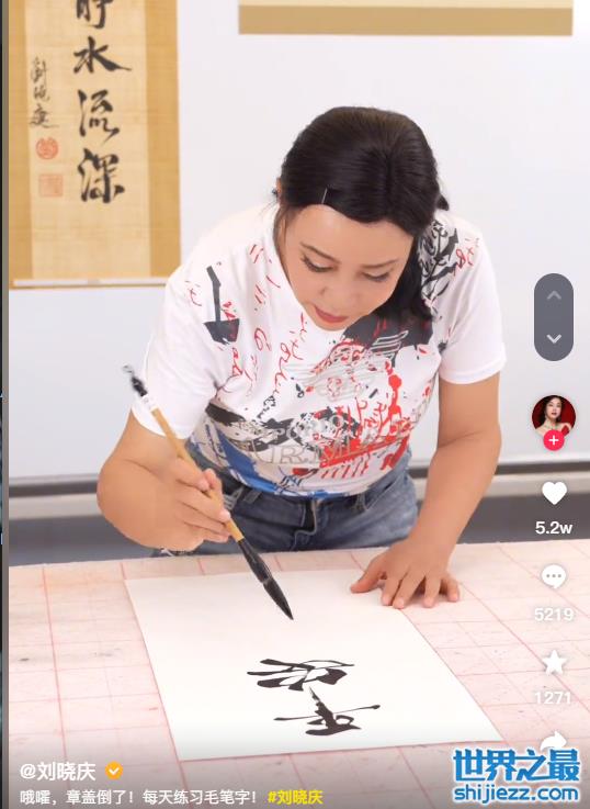 只见刘晓庆十分认真地练着毛笔字,手里握着毛笔不徐不急地写着,很是游刃有余。终于刘晓庆完成了这副书法作品,到了要盖章的环节,刘晓庆确实不慎把章盖倒了,可能是上岁数眼睛也有些许老花,到了67岁,明星也不得不服老。