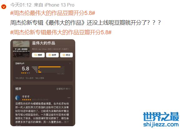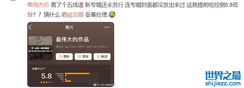 离大谱!周杰伦新专辑还未上线便遭黑粉打1星,豆瓣开分仅5.3分 ...
