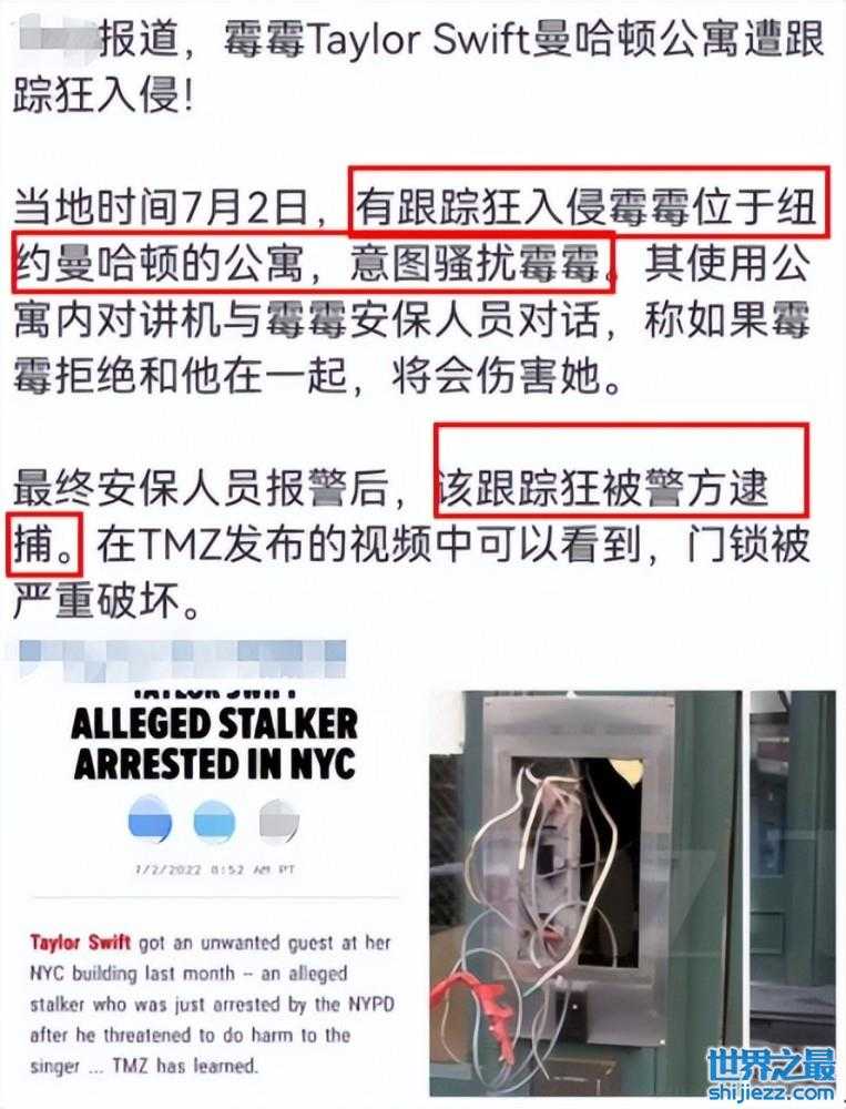 巨星泰勒被跟踪狂骚扰,公寓门锁被严重破坏,跟踪狂扬言要伤害她 ...
