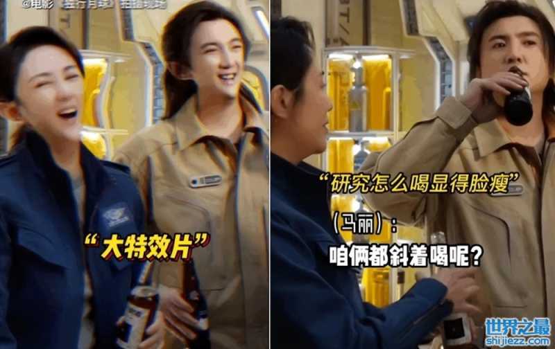 虽然不乏演员敬业表演这样的感人时刻,但还是有不少欢乐在片场发生。在拍摄《独行月球》中,沈腾马丽在片场研究怎么喝饮料才显瘦,最终都决定侧脸喝。而沈腾却调侃到时候拍完,不知道谁演的,特效全在修脸,俩人看着一模一样,现场直接捧腹大笑。