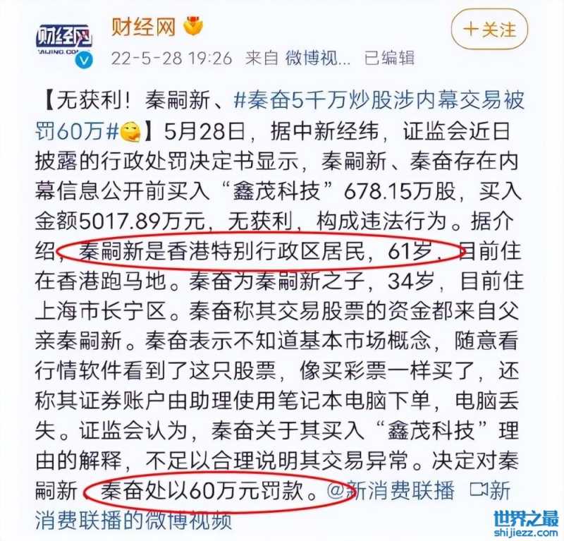 其实大家当时在意的不是秦奋被处罚60万的事情,反倒是终于知道了秦奋的父亲是谁,他的真实身份到底是什么!