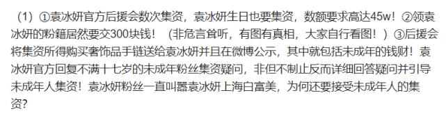 袁冰妍的大部分粉丝都是未成年的学生党,几百元的集资费用对他们而言并不是小数目。其中在未成年粉丝咨询相关事宜之际,工作人员不但没有加以劝阻与制止,反倒引导对方加入集资。