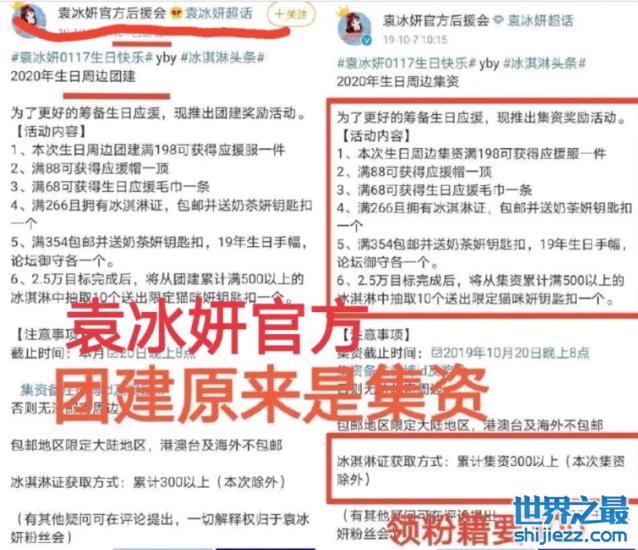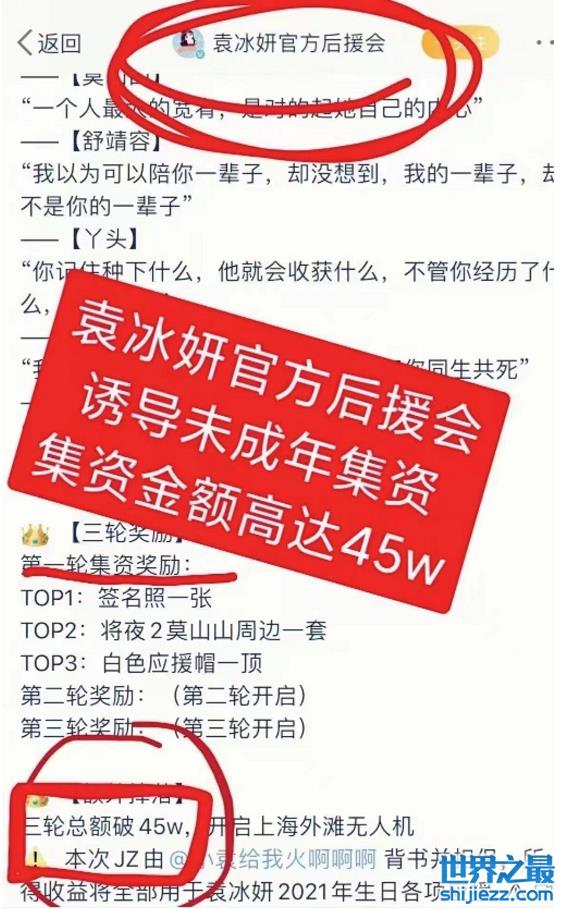 一场生日会下来,粉丝便募集到45万元的巨款,当时袁冰妍的官方后援会还发布过有关粉丝集资的动态,还推出了满额奖励机制,其中领到粉籍需要交满300元。