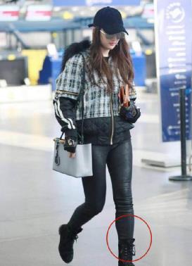 还有机场照,身穿紧身裤,图中仔细观察也会发现即使刘亦菲双腿比较纤细,但这脚踝也依然是毫无存在感,直接小腿一路直到脚。