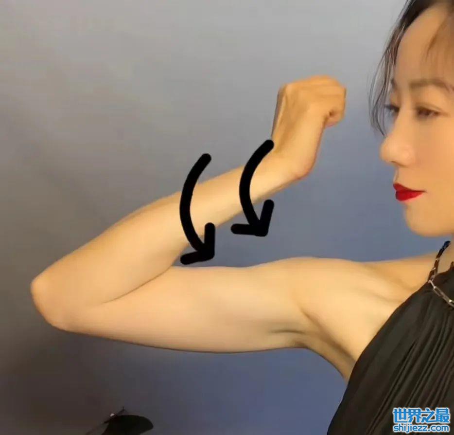 侧面就更清晰了,韩雪直接让摄影师凑近拍,伴随着她手臂的摆动,肱二头肌也随之摆动,发达的肌肉一目了然。