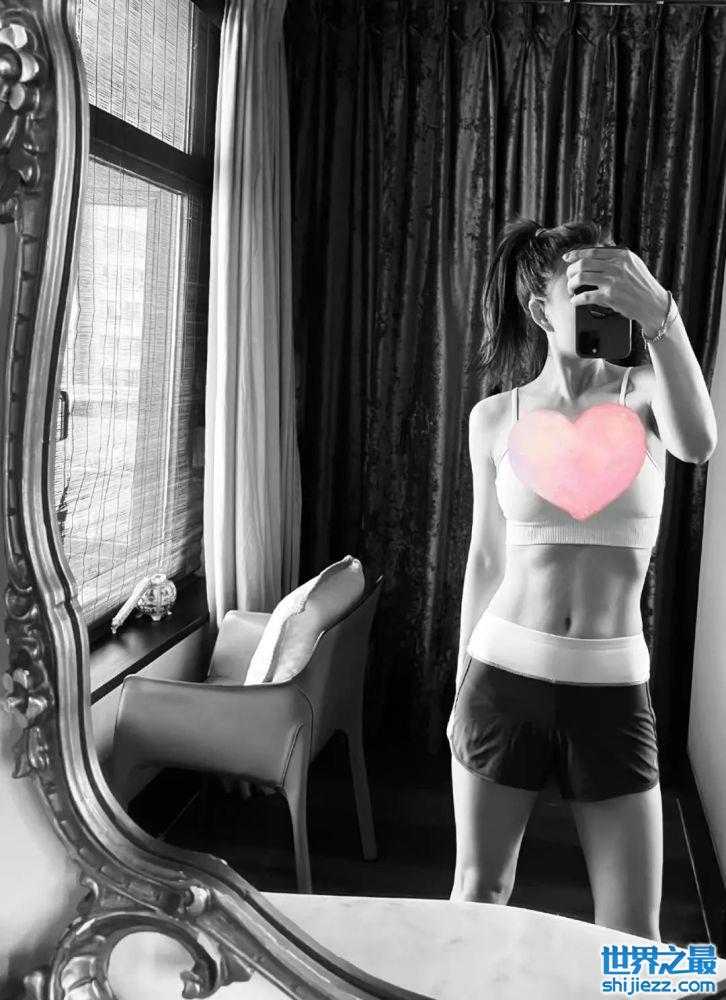 运动了一会后,殷桃便停下来,开始对镜自拍,肚子上不见赘肉,身材真是好得没话说。
