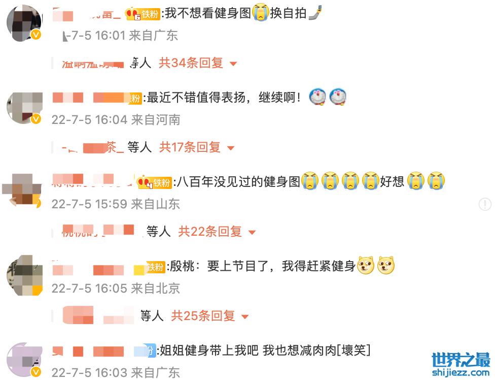 在看到殷桃的健身照片之后网友们也是纷纷在评论区表示好久没有见到殷桃健身了,猜测是不是要上节目了所以就开始健身了。