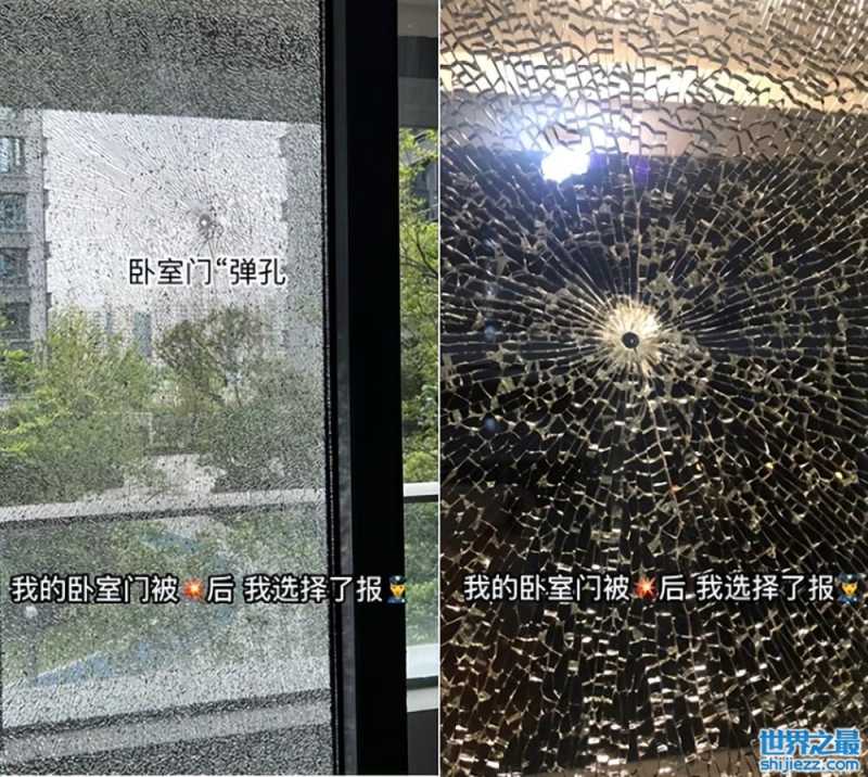 在花筱鸳晒出的视频里,明显可以看见儿童房推拉门上有个明显的弹孔,玻璃已经散落一地,花筱鸳当下便选择了报警,警方随后把物证,一个疑似钢珠枪的东西带回所里。