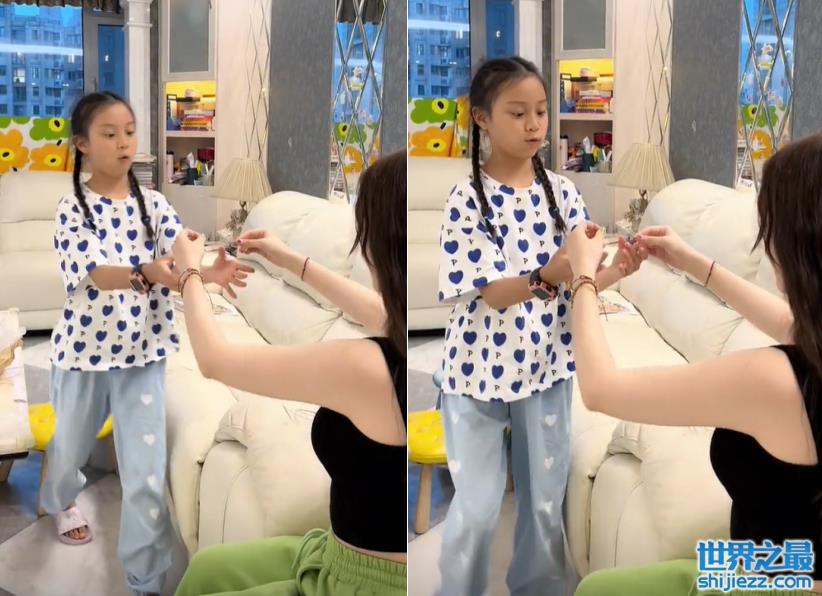 母女二人在豪宅家中客厅里坐着,家里的装修十分精致,角落柜子里摆放着一堆杂物,显得有些凌乱。嘴里还在嚼着东西的甜馨,接过项链后便开始帮妈妈佩戴,她一把搂住妈妈的脖子,李小璐也作势拥抱住了甜馨。不得不说,这画面看起来真是幸福又温馨。