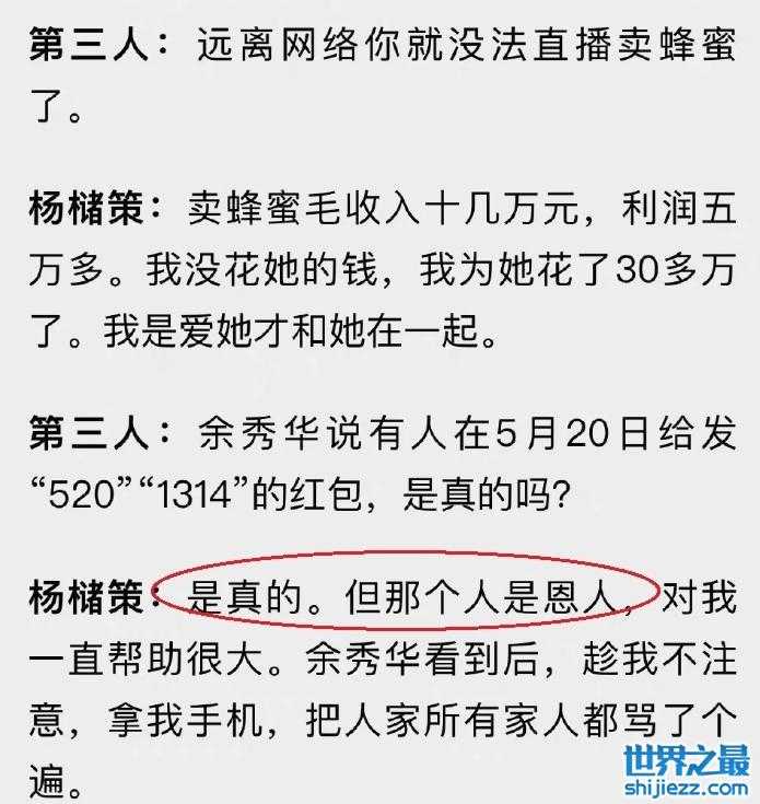 另外说到第三者的那个转账,杨槠策说是真的,有这么一个人,但那个人是我的恩人,不是所谓的其他女人。