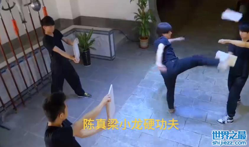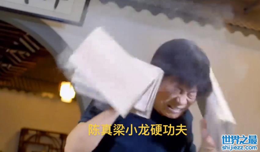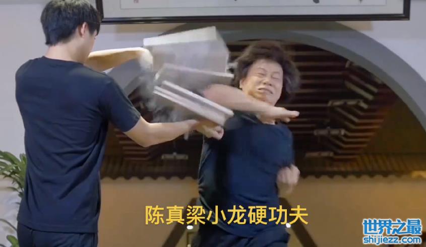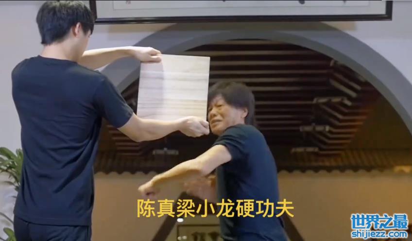 紧接着梁小龙又展示了他用头撞断木板的绝技,虽然层层木板叠起来看上去十分牢固,但是在梁小龙用力把头撞过去之后,层层木板还是不堪一击,直接碎成两半,而梁小龙毫发无伤。