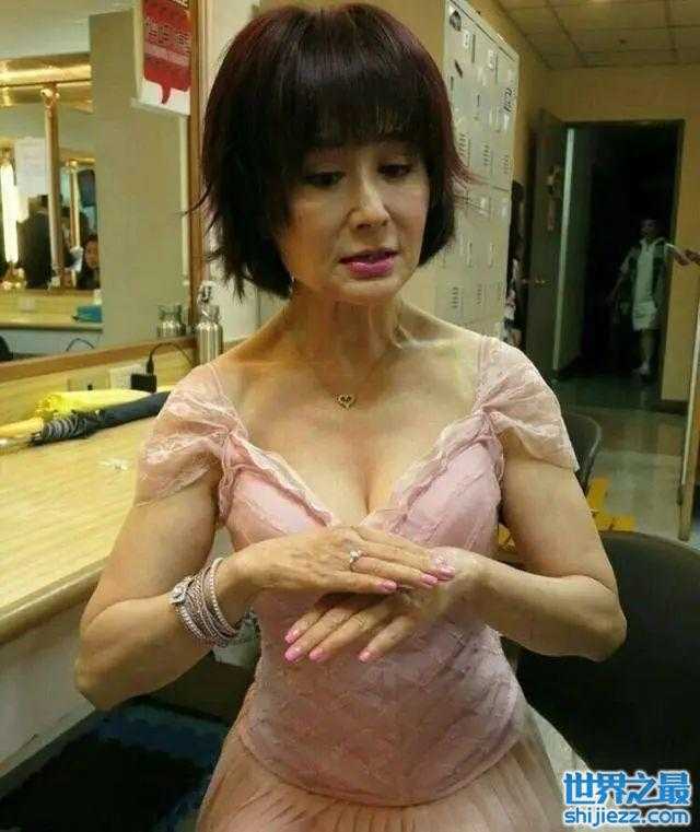 年近70岁的她仍然留着一头乌黑长发,不过发际线明显后移,脸上因为消瘦显得凹陷,但整体看起来属于自然衰老的感觉。