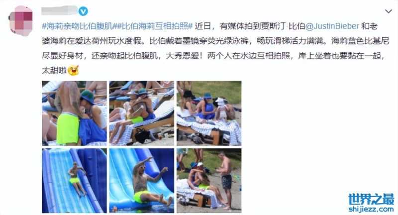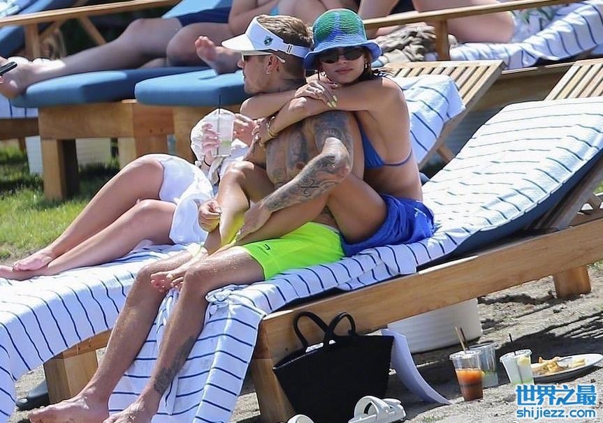 比伯夫妇海边大秀恩爱!闭眼亲吻老公腹肌,手和脚紧紧挂对方身上 ...