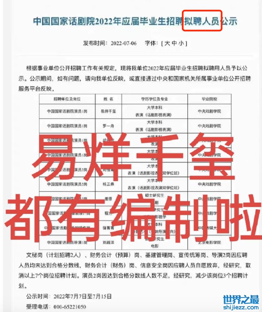 紧接着,大家发现他们以应届生的身份考上编制,按规定只需要通过面试就可以获得“铁饭碗”。其实不光是他们仨,娱乐圈已有不少演员进入了国家话剧院。