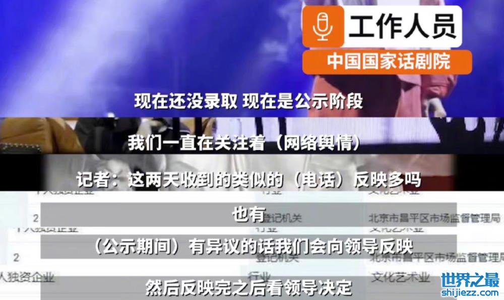目前,国家话剧院回应称:目前还没正式录取,处于公示阶段,一直在观察网络舆情,质疑情况已经反馈,等领导决定。