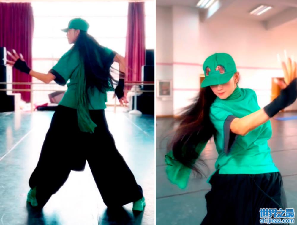 近日,杨丽萍在社交平台晒出一段跳舞视频,当日杨丽萍穿着就像一只绿色的孔雀,戴着绿帽子,穿着绿衣服绿鞋子,透露出青春活力。