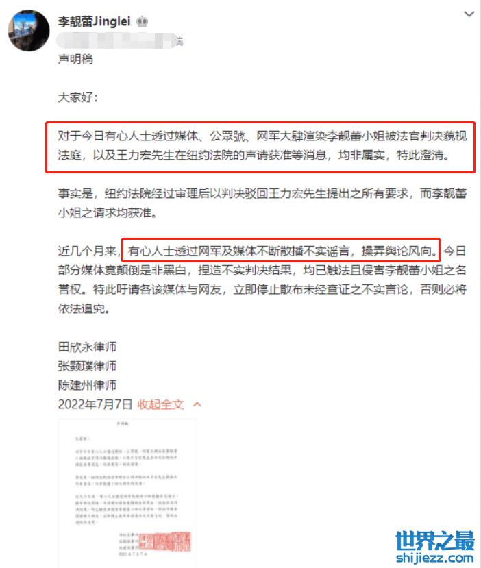 这让不少网友“恍然大悟”,虽然李靓蕾马上发出了声明,澄清这件事是不真实的,并且声称是有人在操纵舆论风向。