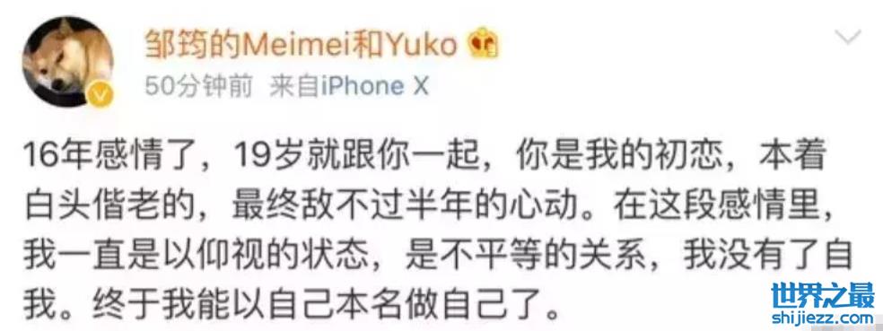在她发声后,妻子邹筠也在社交平台上发声,称两人在一起了16年,是自己的初恋,一时间大家都对渣男和小三“讨伐”不已。