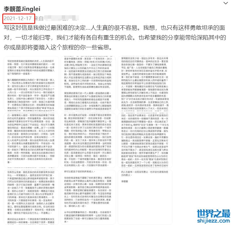 第二种说法是对李靓蕾小作文引起的抵触情绪,这其实是有个过程的,在一开始,大众对李靓蕾的遭遇非常同情,和王力宏相比,连生3胎,放弃自己的生活、结果在孩子稍微大一点就被“抛弃”的李靓蕾更能引起大家的同情心。
