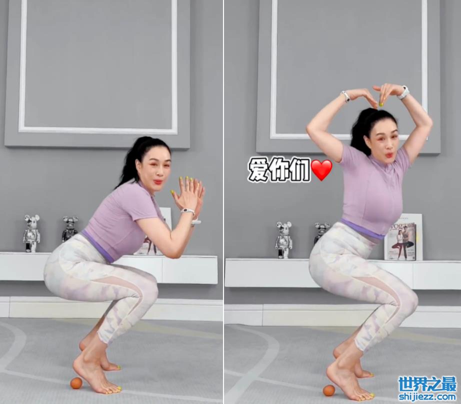 这个动作非常考验平衡能力和腰腹核心力量。不过钟丽缇显然对这项挑战游刃有余,只见钟丽缇非常轻松地下蹲又起来,表情非常愉悦,一点也看不出吃力,在过程中甚至还给屏幕前的粉丝们比了个爱心,真的很厉害,