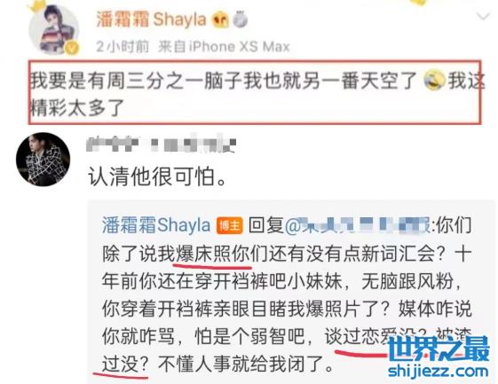 当初周扬青发文,锤小猪“多人运动”的时候,潘霜霜也发文,表示自己如果像周扬青那么有脑子就好了,言外之意是在内涵林峰的私生活也混乱。不仅如此,在回复网友的留言时,潘霜霜那句“被渣过没”,也疑似在含沙射影吐槽林峰。