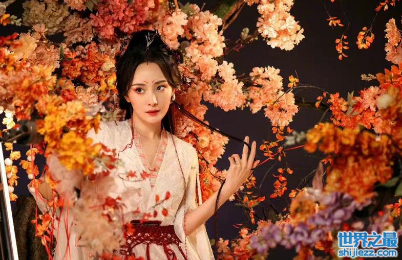 由于本次在剧中杨幂的角色是狐妖小红娘,所以她的妆容也是按照小狐狸的样子上妆的,白皙细腻的脸庞上化着上扬的红色眼线与艳丽的红色口红,一双含情脉脉的眼睛深情地望向镜头,魅惑极了。
