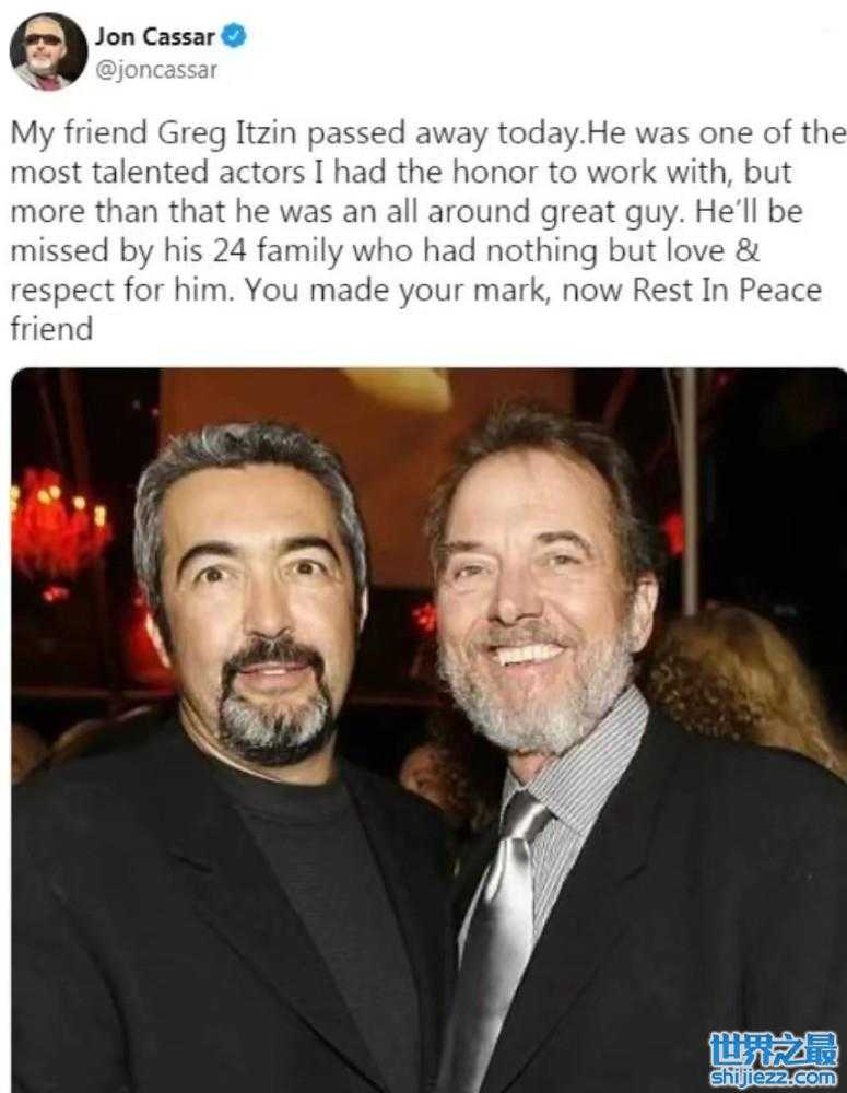 在得知格里高利·伊齐恩去世的消息后,制片人强·卡萨也是在社交平台上发文悼念:“他是我有幸合作过的最有才华的演员之一,但更重要的是他是一个好人,他会被大家想念,他们对他只有爱与尊重,现在安息吧,朋友”强·卡萨字里行间都是对格里高利的不舍与尊重。