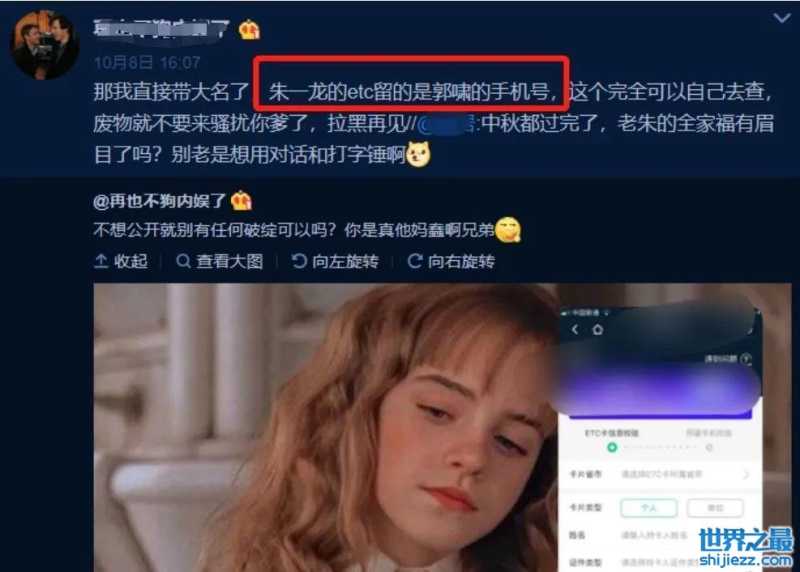 这一次私生粉不知道从什么渠道得到了朱一龙身份证号,通过天眼查搜索到郭啸的企业和手机号,并用她的手机号去验证朱一龙的ETC,而且验证成功了。