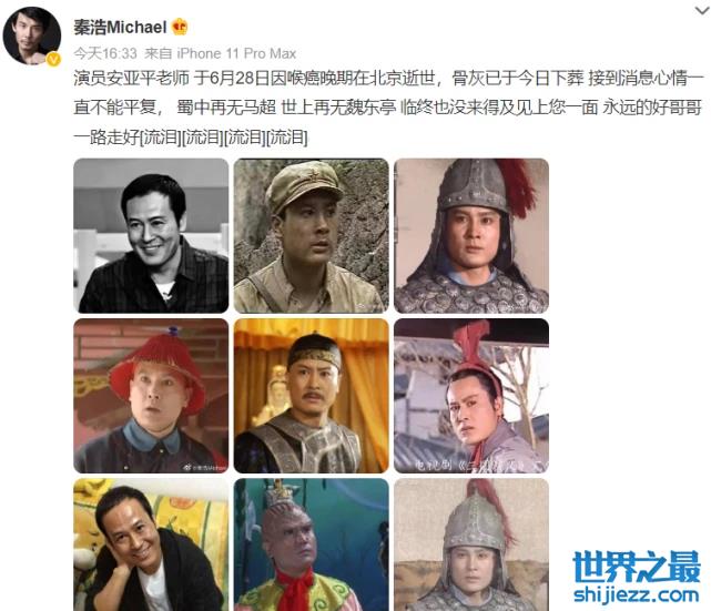 7月10日,演艺圈再传悲痛噩耗,据演员秦浩发动态透露,演员安亚平于6月28日因喉癌晚期在北京病逝,终年58岁。鉴于安亚平生前为人低调,所以其家人也并未公开其去世的消息,直到安亚平骨灰得以安葬之后,周围好友才得知实情。
