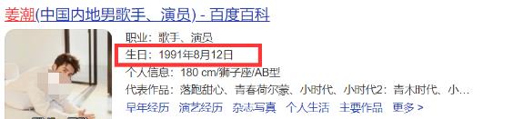 后来这部剧让姜潮小爆了一下,网上的出生年份就变成了1991年,瞬间从85后男星,摇身一变成为了90后鲜肉。