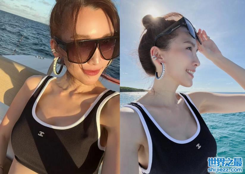 陈若仪穿运动内衣出海,坐游艇上大秀长腿,脚腕处一条链子太抢镜 ...