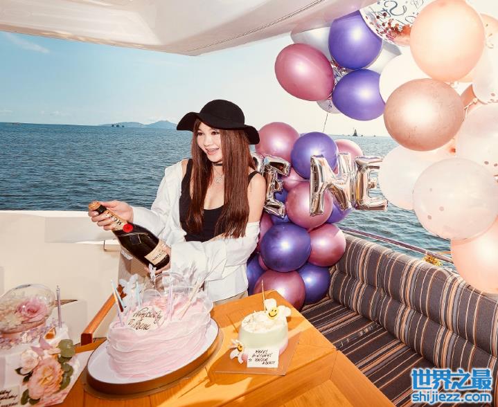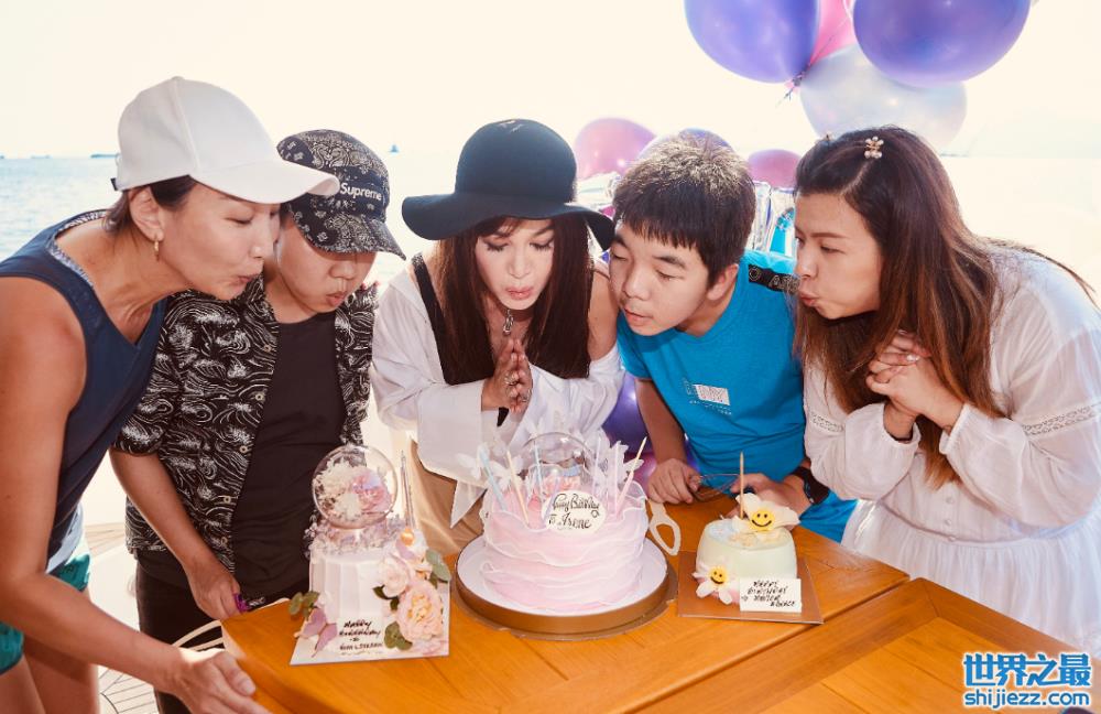 游艇上香槟美酒、蛋糕气球,布置得很有游玩的氛围感,蛋糕上还写着“happy birthday to Irene”,看来这次游艇出游还是温碧霞的“生日趴”,她提前庆祝了自己的56岁生日。