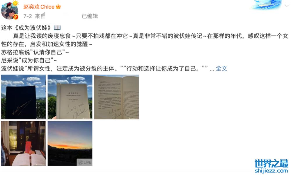 另外,赵奕欢还会滑板、爱跳舞、喜欢拍照,热爱读书,经常在社交平台给大家分享自己的读书感悟。翻看她的社交平台,处处充满对生活的热爱。