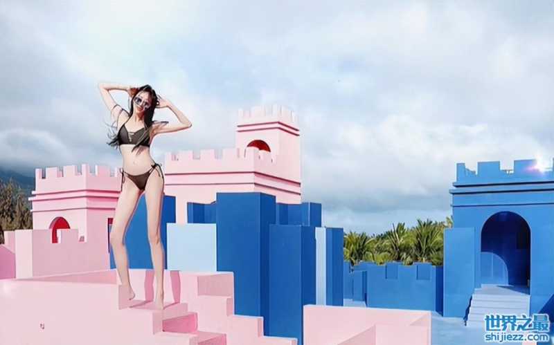 站在五颜六色的建筑物之中的蒋丽莎,像极了城堡中的芭比娃娃,画面美得像是画报,十分赏心悦目。