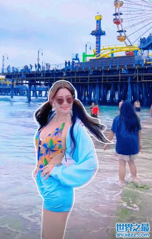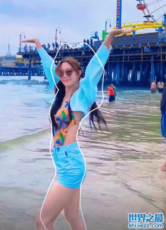 克拉拉虽然没有和路人一样,直接下海中游泳,但穿着夹脚拖鞋的她,一直站在海水中泡脚,还摆出了许多有创意的姿势来为大家示范如何在海边拍出有趣的美女写真照。
