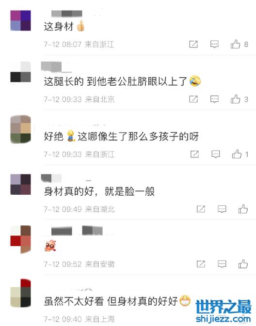 网友们在看过这组照片以后,也是不断地夸赞蒋丽莎身材好,称她五年连续剖腹产生下4个孩子,身材还能保持得这么好,真的很难得。而且照片看起来,腹部是一点赘肉都没有,妊娠纹也不明显,不得不说身材保持得太好了。