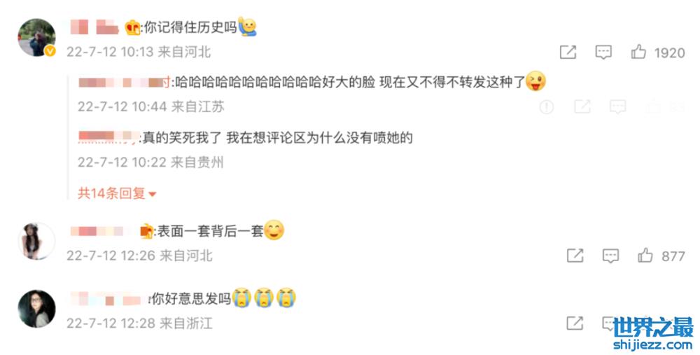目前,她的微博评论区已经沦陷,网友纷纷质疑她两面派,当面一套背后一套的吃相很难看。