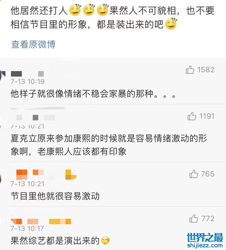 有网友表示自己对夏克立会家暴表示震惊,称人不可貌相。