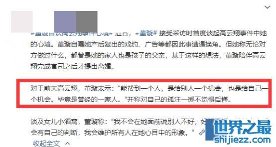 但从董璇离婚后的采访来看,董璇多次称呼高云翔为“别人”、“他人”,疑似划清自己与其关系;