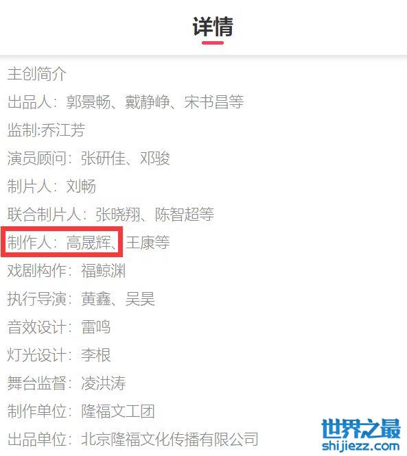 而在话剧的详情介绍中可以看见,高晟晖还是话剧的制作人。