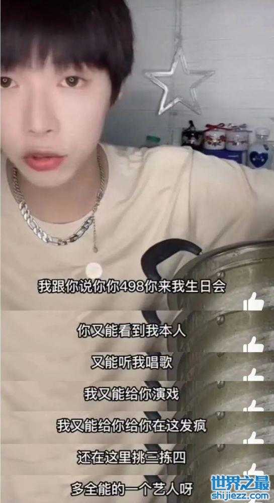 和粉丝们说去买自己498一张的生日会门票,不仅有唱跳表演,还有发疯才艺。