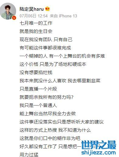 自己没有团队,7月份的生日会是唯一的工作,只有票卖出去了自己才能有舞台。
